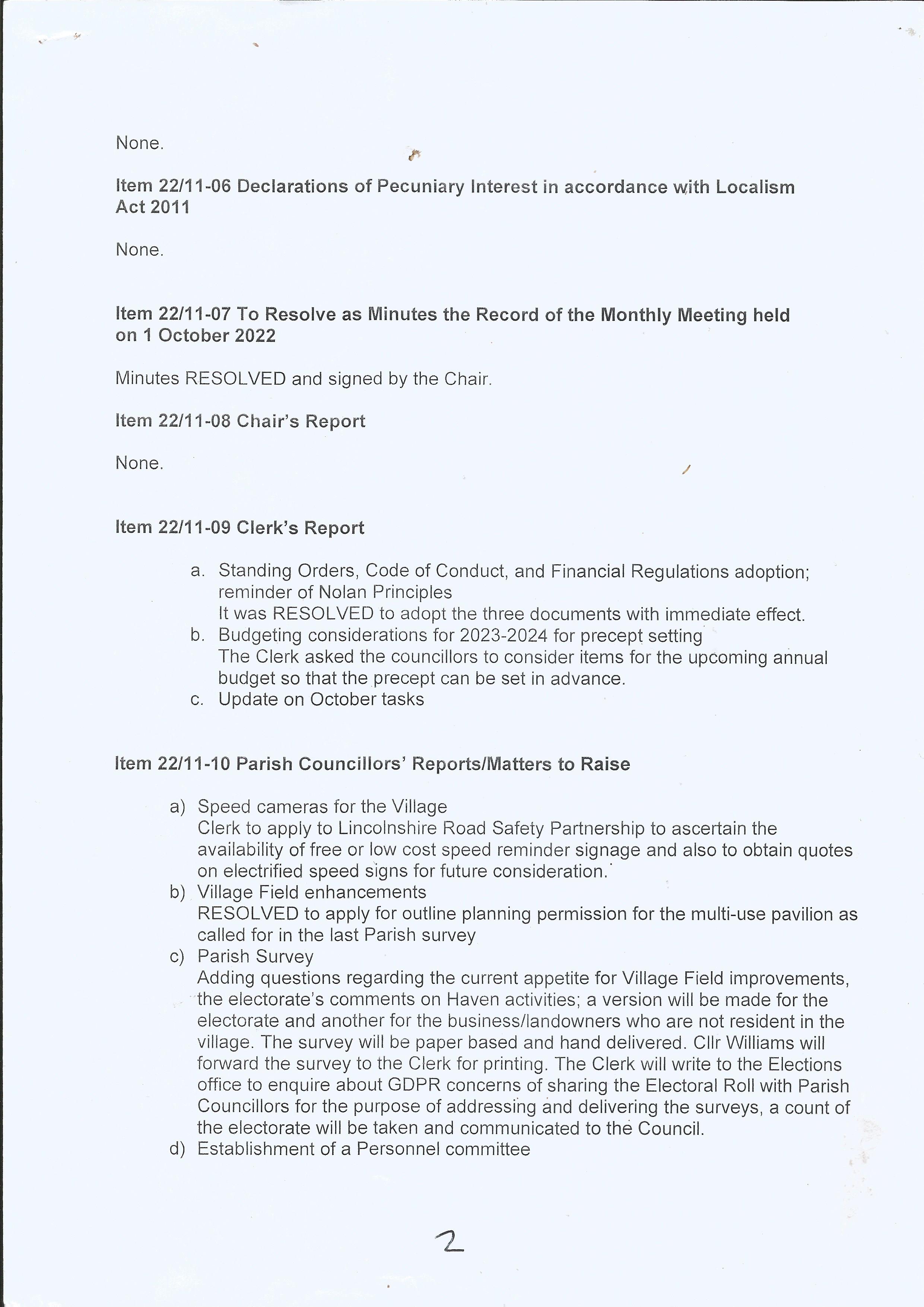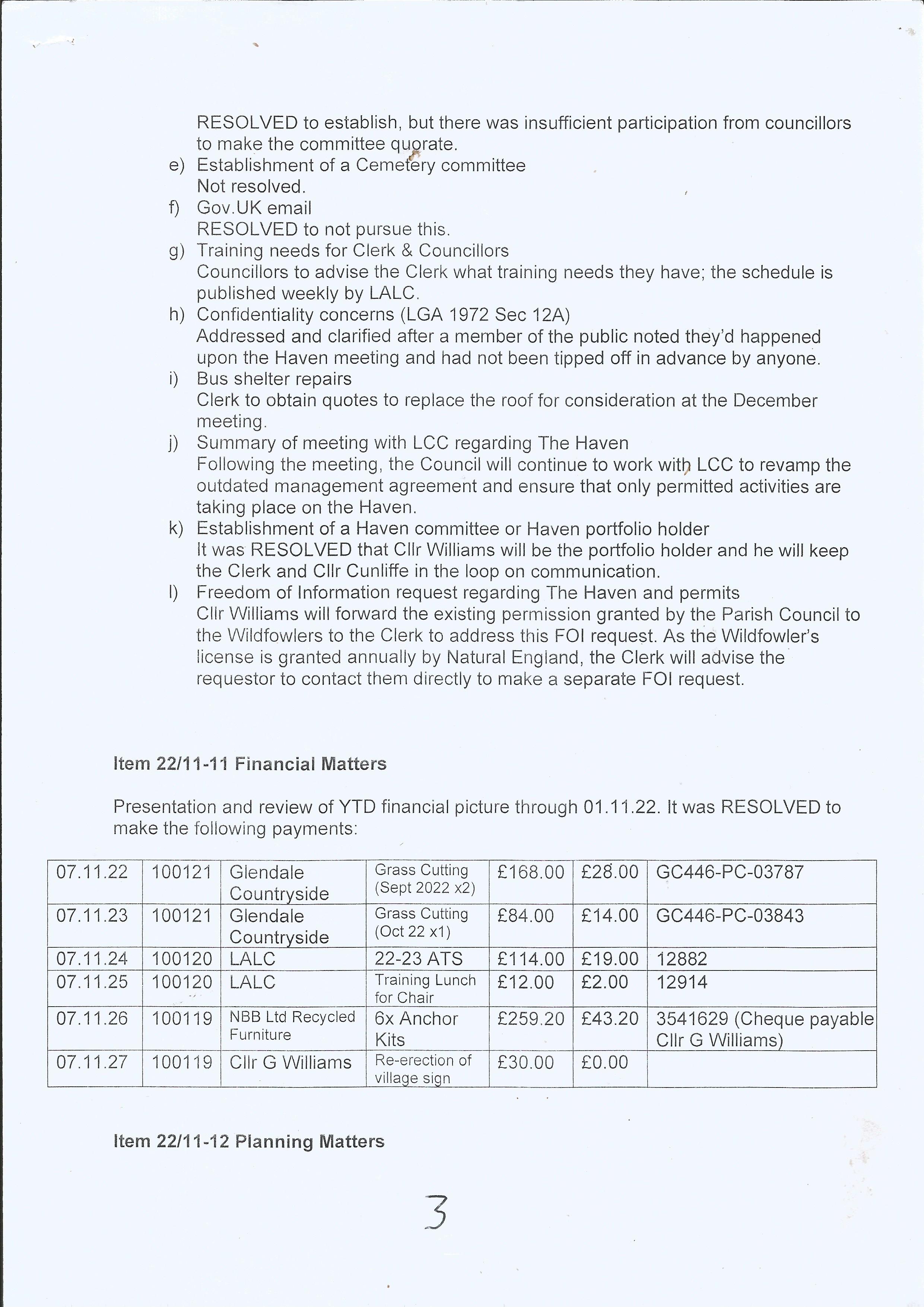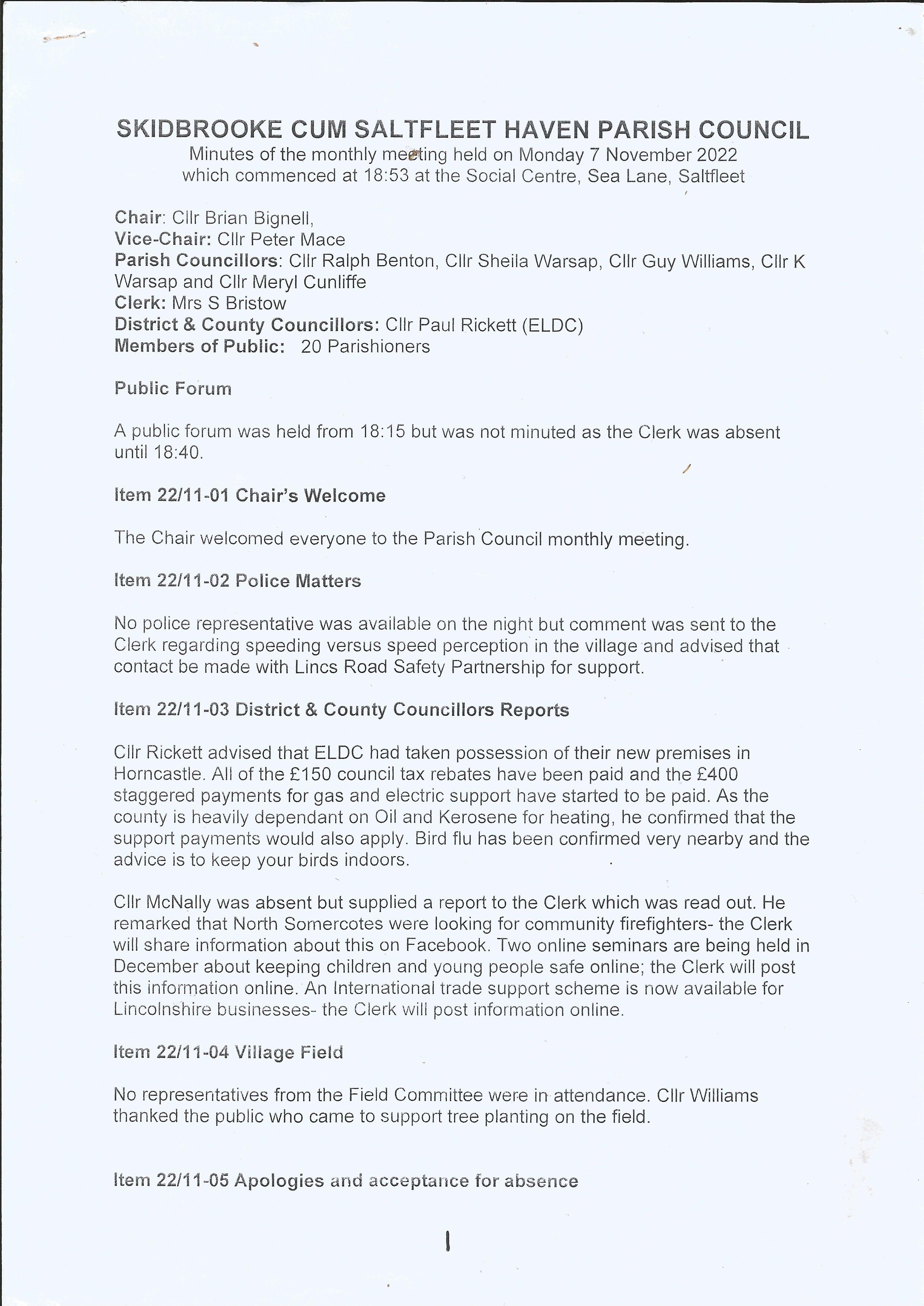 7 November 2022 Minutes